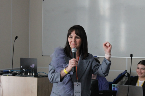 Елена Белова, эксперт сообщества «Созвездие Флагманов образования», директор МАОУ «Лицей 22 города Белово» имени К. Д. Ушинского, рассказала о межрегиональном проекте «Кузбасс – Донбасс».